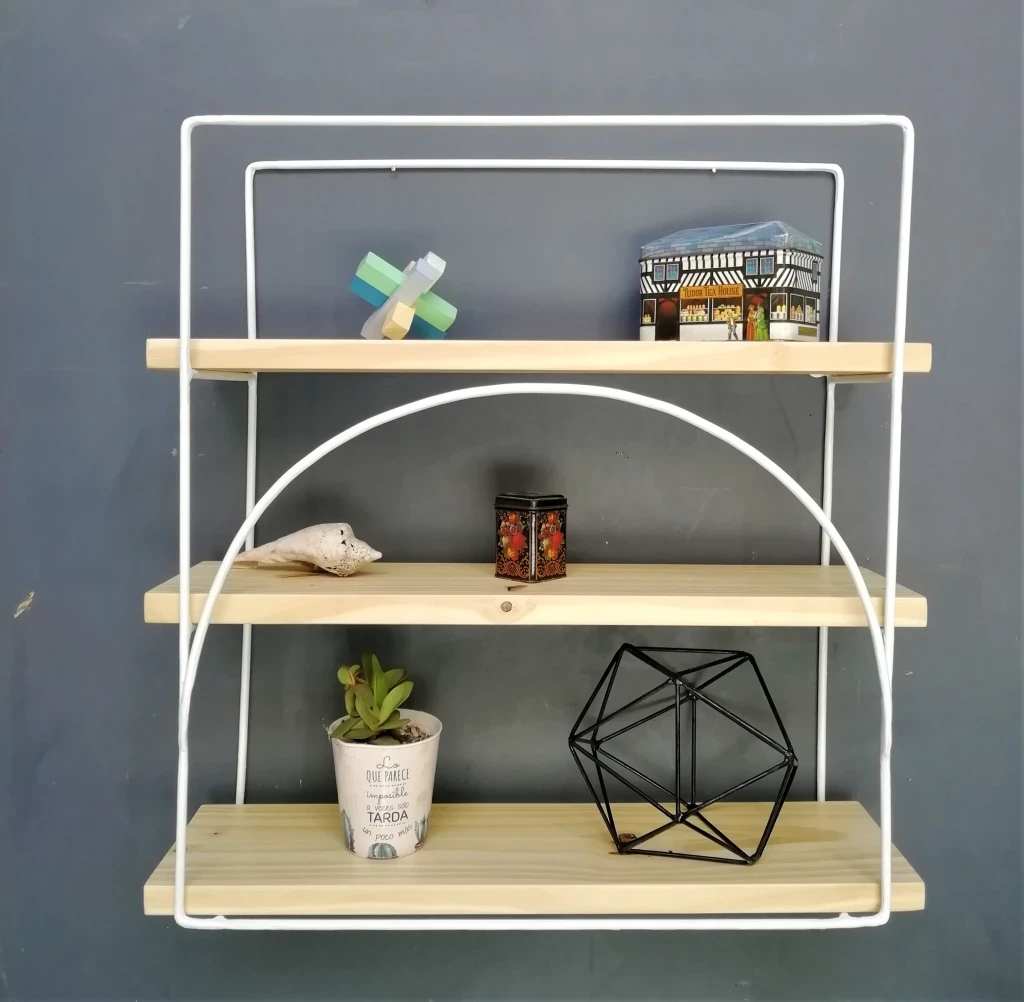 Estantería de hierro fabricada de manera artesanal con varillas de hierro macizo liso de 6 mm pintado.