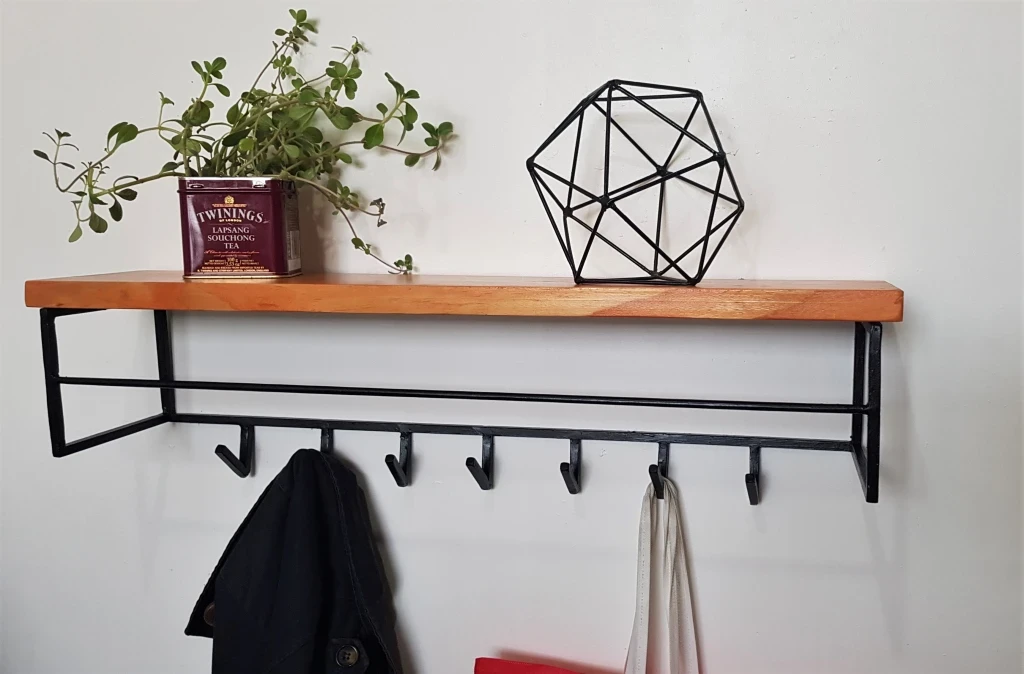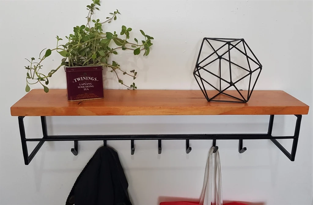 Realizado con hierro macizo cuadrado de 10mm con madera de pino protegida con Cetol incoloro. (consultá por otras maderas o tintes)