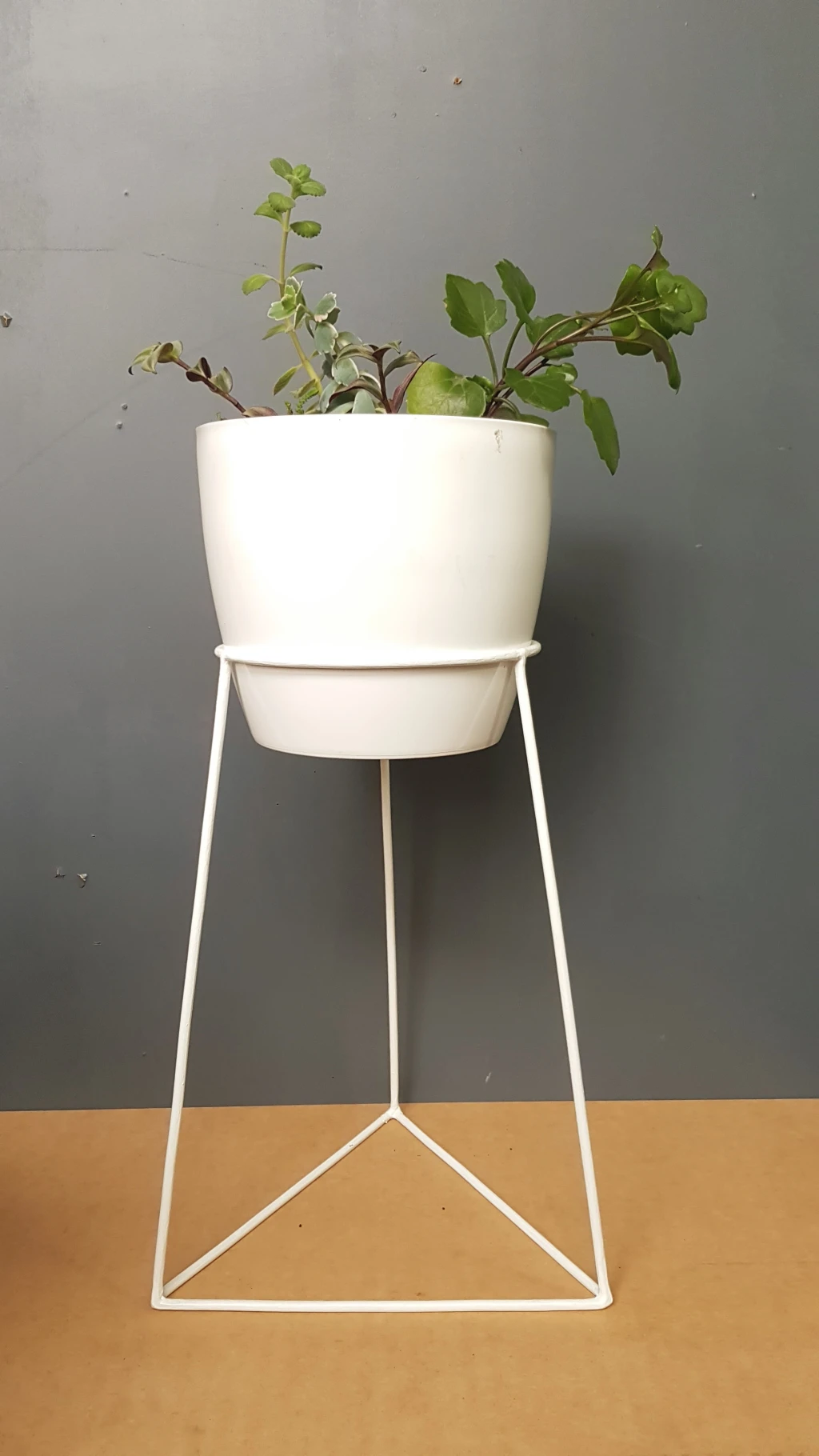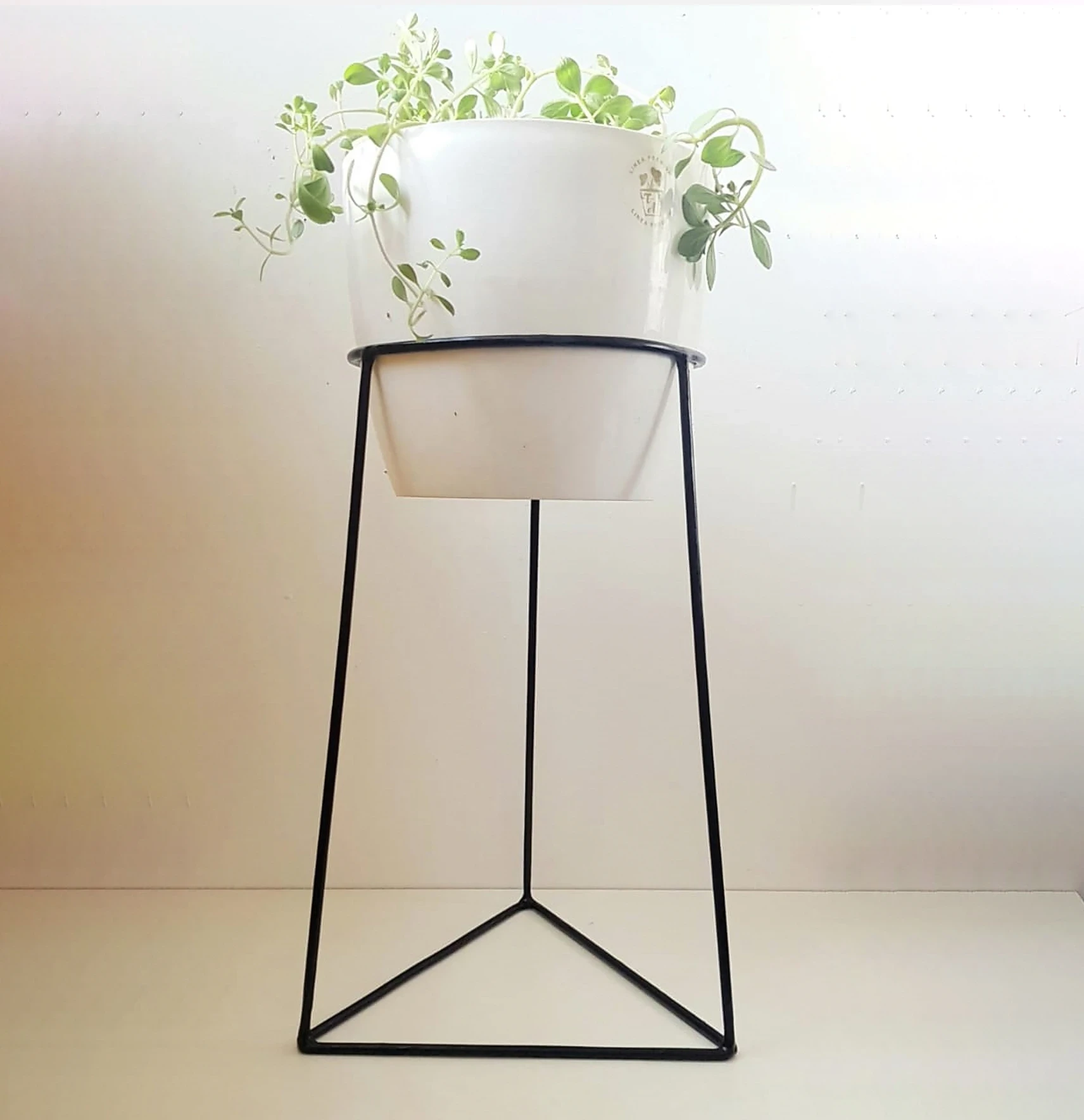 Pie Portamaceta de hierro, fabricado de manera artesanal con varillas de hierro macizo redondo liso de 6 mm pintado.